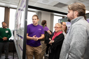 Joey Brogan, an undergraduate and research technician in the Aristilde Research Group, shared a poster about the lab’s SmartSense project that seeks to identify signals released by plants when they are facing hunger or nutrient starvation.